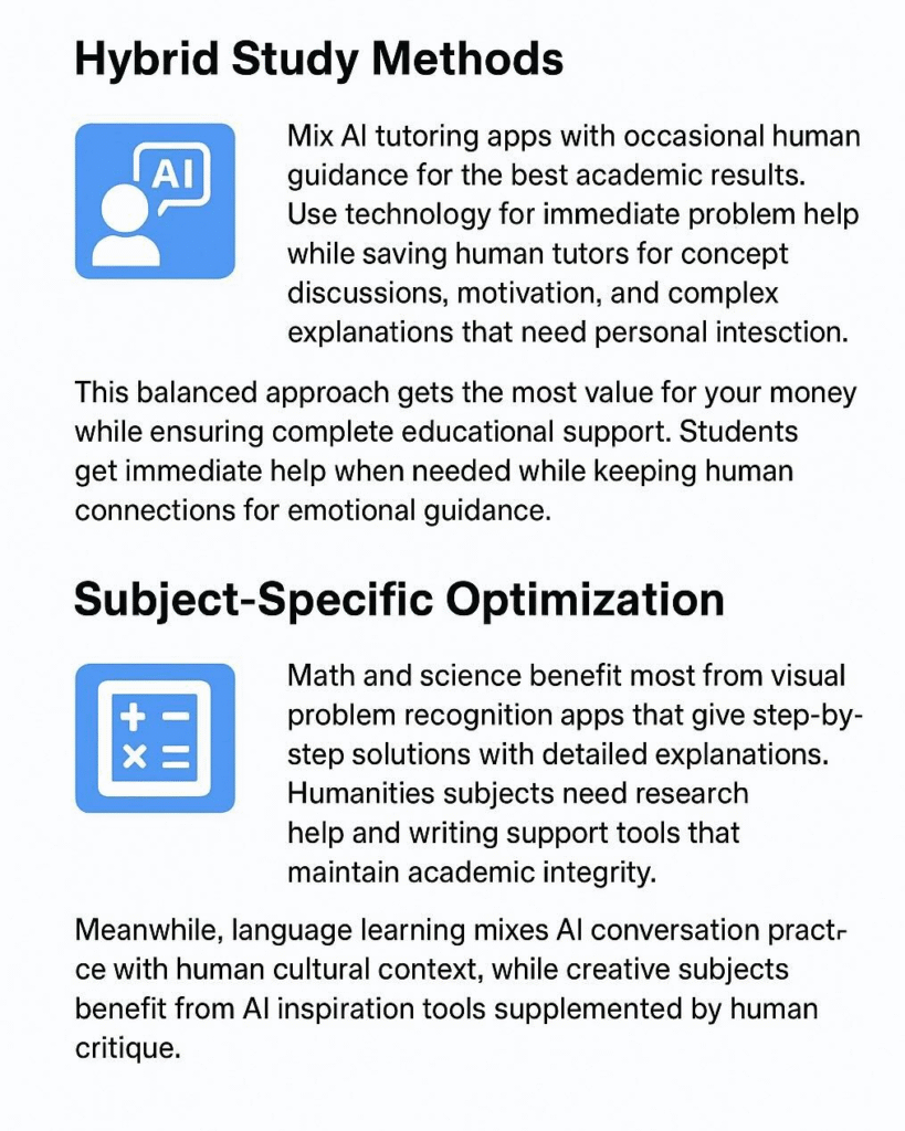 The smartest strategy uses AI for quick problem-solving while keeping human tutors for motivation and tricky concepts that need personal explanation.
