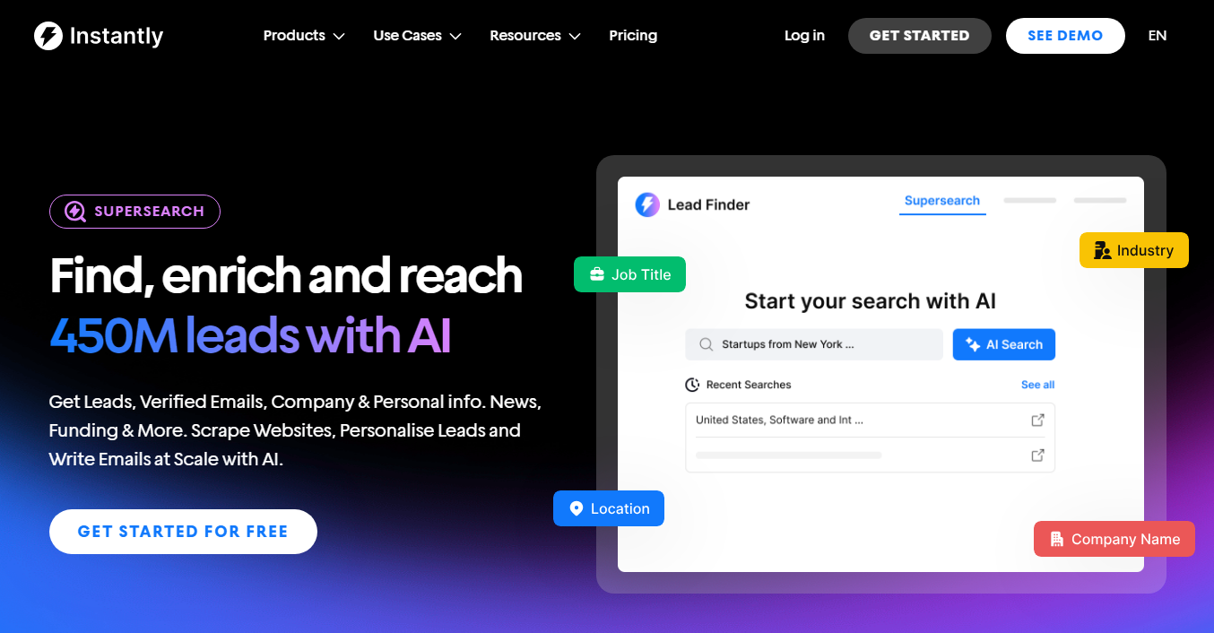 Supersearch allows you to search millions of verified contacts in any way that you want. You can filter by industry, company size, job title, technology used, location, region, hiring signal, or even recent funding rounds. With Supersearch, the data you’re getting isn’t static, either. You’re being given high-intent leads that are ready to hear from you.