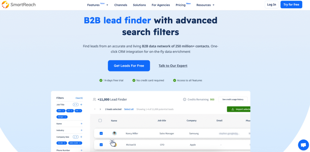 If you want a lead generation tool that goes beyond just giving you a list of names, SmartReach.io’s B2B Lead Finder is built for that. It helps you find verified business contacts that actually match your target audience, not just anyone with an email address. Every lead is validated in real-time before export, so you won’t waste hours cleaning up bounced or invalid emails.
