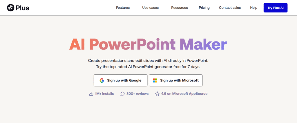 Bottom line: PlusAI pairs rapid generation with native-file editing, so you save time upfront and avoid losing it back to cleanup, ideal for teams who work in PowerPoint or Google Slides.