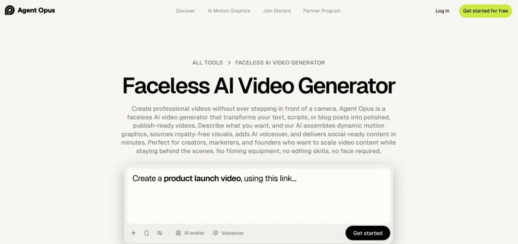 Best for: Content creators, marketers, and founders who want to produce faceless, publish-ready videos entirely from text without any filming or editing