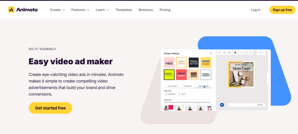 Animoto is a solid tool for anyone who needs video ads quickly. It works well for social media platforms and YouTube campaigns, offering simple editing controls and drag-and-drop video assembly.