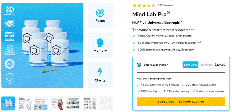For inspiration on how to do this, check out Mind Lab Pro. This brand uses visuals to address key conversion obstacles (such as shipping cost, cancellation policies, etc.), knowing that these play a huge part in determining how safe shoppers feel about buying from a brand and understanding that clarity effectively drives conversions, profits, customer satisfaction, and loyalty.