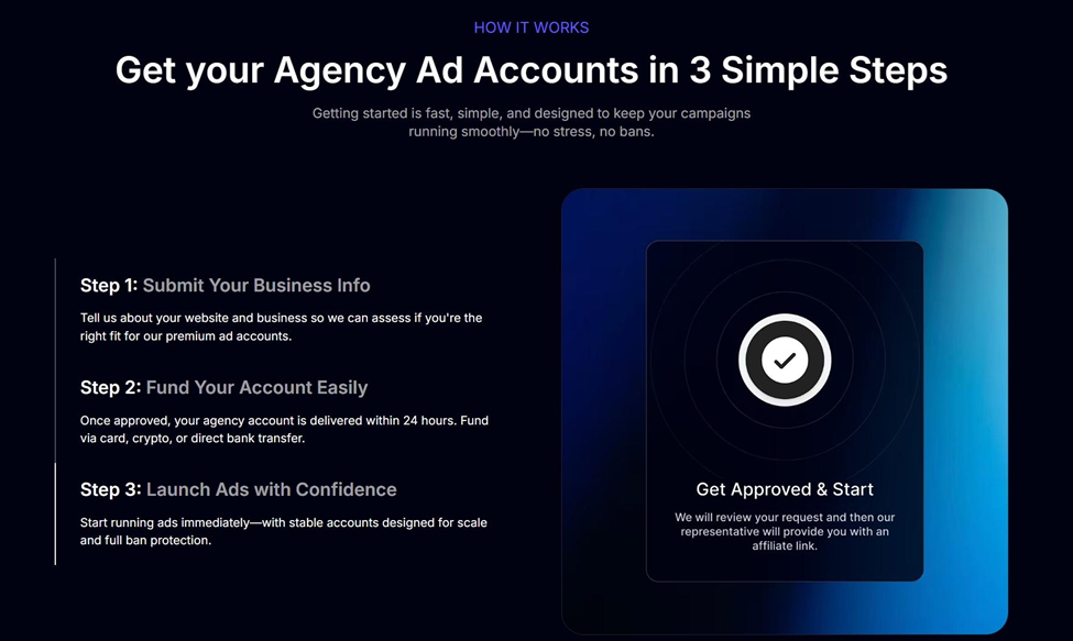 This matches exactly what their audience wants: experienced marketers who need ad accounts quickly without hassle. Every touchpoint reinforces that same promise, making their brand instantly recognizable and trustworthy.
