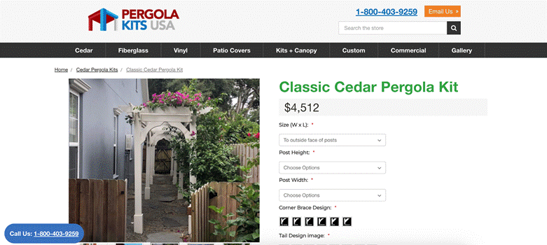 Check out how PergolaKitsUSA.com does it. This business expertly combines technical, branded, and UGC visuals in the topmost section of its product pages, with the overall effect being that of a detailed product photo gallery. This optimization tactic allows buyers to see the same solution in several different, real-life contexts. Moreover, it gives them all the info they need to decide if it’s the right option for them.