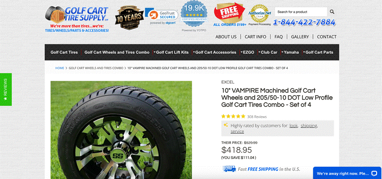 If you look at the Golf Cart Tire Supply product pages, you’ll notice that this brand always points out that each product comes with fast and free shipping in the US. This is especially important considering the size and weight of the items this brand sells.