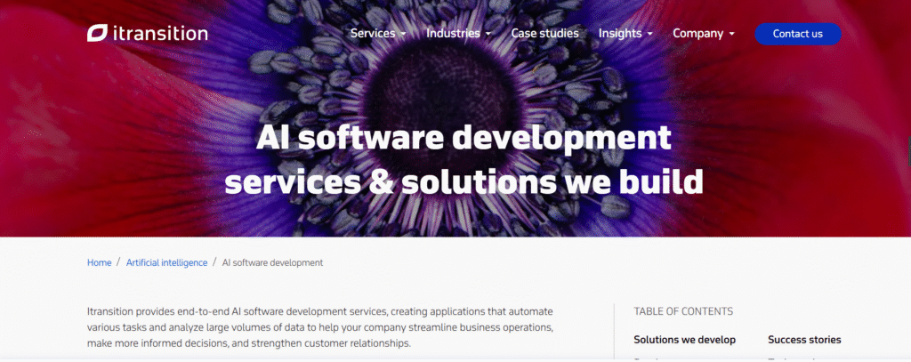 Itransition has proven expertise in AI consulting, intelligent automation, and chatbot development. Its AI solutions are widely implemented across industries, including retail, banking, and automotive, helping businesses streamline operations and enhance customer experiences.
