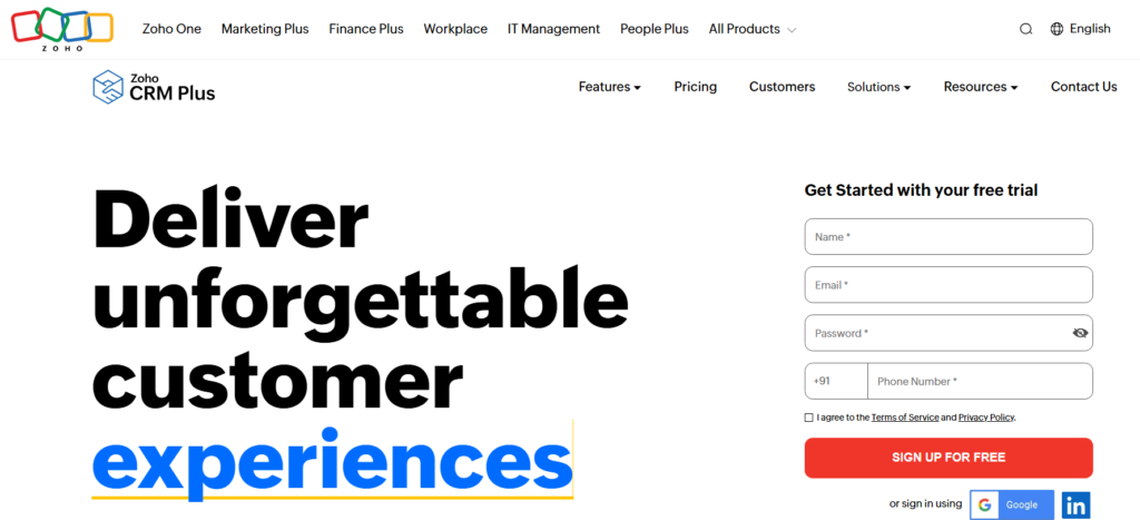 Zoho CRM Plus is the “Swiss Army Knife” of the industry. It is a suite of over 10 different apps bundled together.