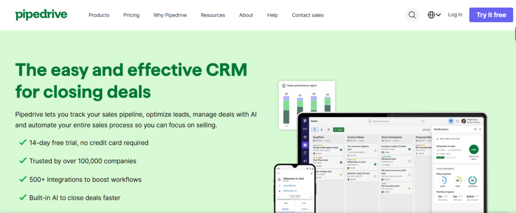Many marketing teams generate leads that disappear into a black hole because the sales CRM is too complex. Pipedrive solves this. It is visually addictive. While it requires the “Campaigns” add-on to function as a MAP, it ensures that marketing leads are actually worked by sales.