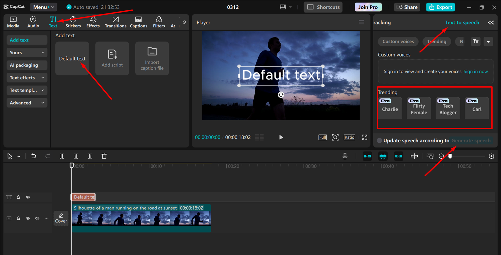 Want to add a professionally paced voiceover to your video? Here’s how you can use CapCut’s text-to-voice feature: